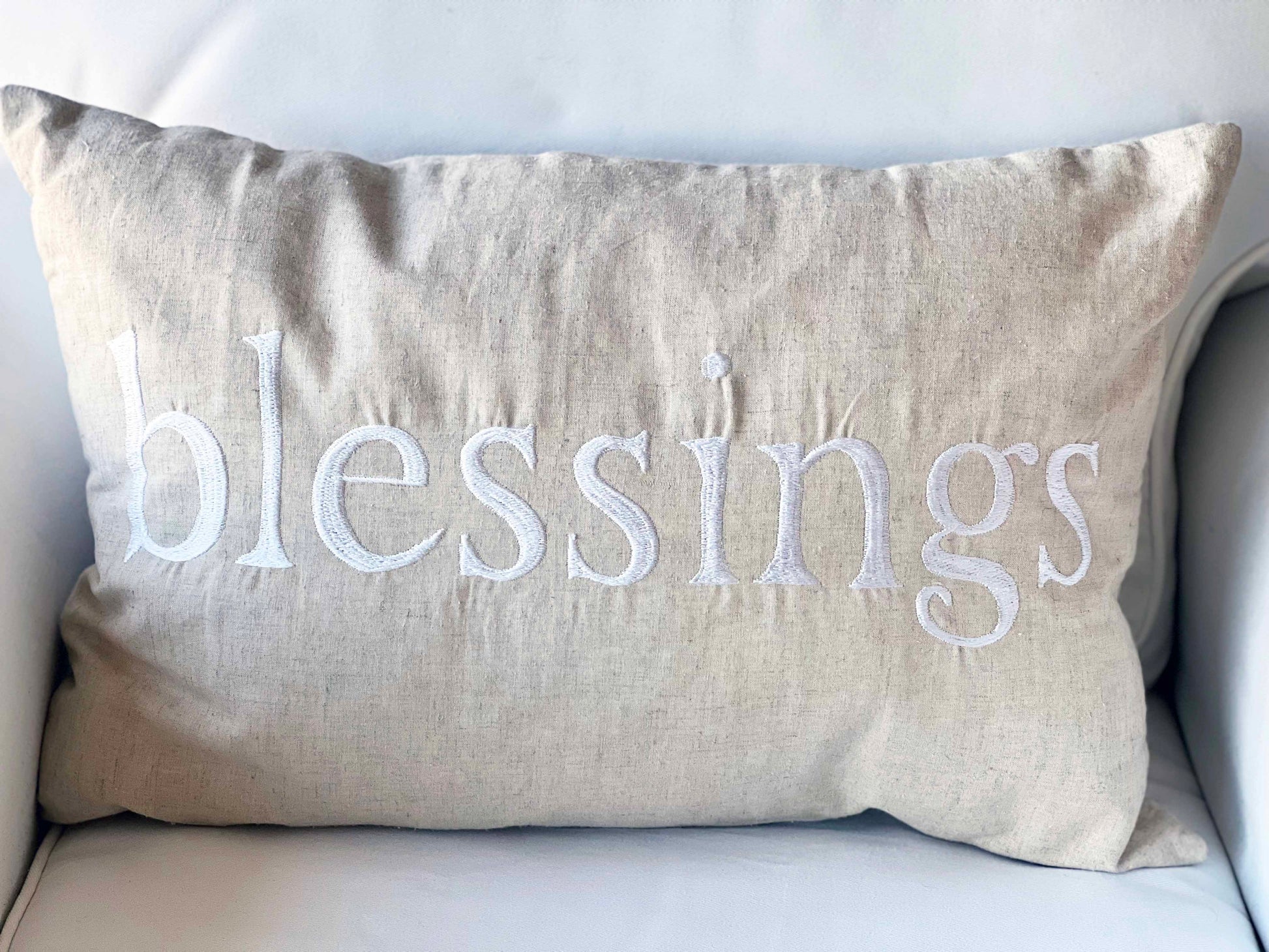 Embroidered on 55% linen/45% rayon with zipper
